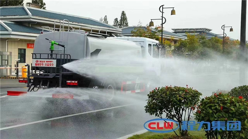 灑水車罐體長度采用一次成型的整體式縱梁焊接,確保罐體的強度。罐體要進行整體噴丸工藝處理,以消除焊縫應力和整體除銹。前沖(噴)、后灑、帶側噴(花灑)、帶后工作平臺、平臺上安裝綠化灑水高炮(炮噴射形狀可調節:直沖、大雨、中雨、毛毛雨、霧狀、可連續調節,360°旋轉),配消防接口,自流閥,濾網,帶自吸自排功能。