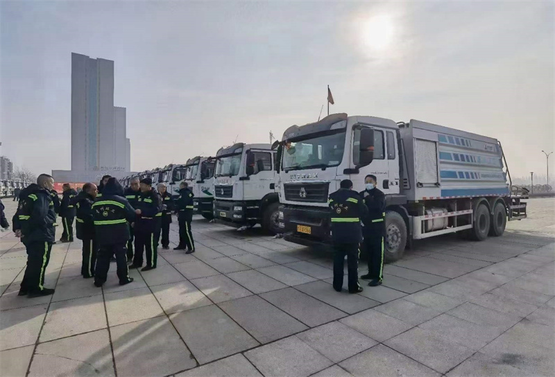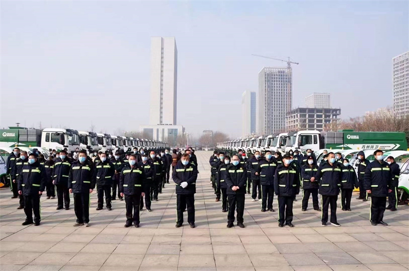 2022年1月26日,新春佳節來臨之際,青州環衛集團有限公司新車交接儀式在市政務服務中心前廣場舉行,16輛豪沃TX濕式掃路車批量交付,為青州城區提供高效可靠、常態化精細保潔的環衛解決方案。