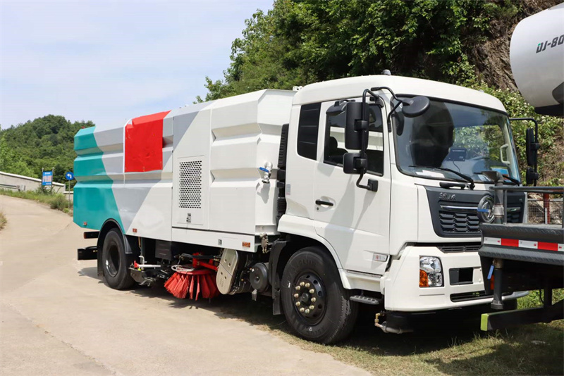 防汛搶險人員和我公司派出的道路清障車、多功能抑塵車、掃路車配合官兵實地演練。