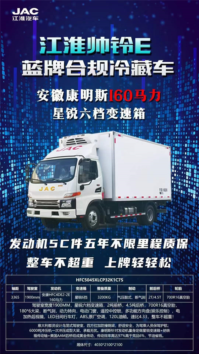 產品,最卓越的品質,最貼心的服務!用冷藏車,首選江淮冷鏈1號!江淮冷藏車一路相伴,守護您的萬里征程!