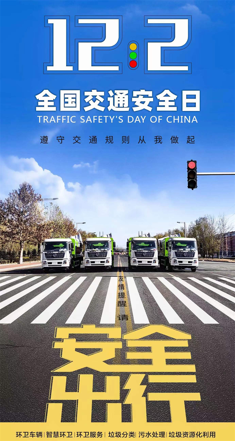 12月2日全國交通安全日,程力集團在此提醒大家安全出行,遵守交通規則從我做起。程力集團環衛車輛、環衛服務、垃圾分類、污水處理、垃圾資源利用回收領航者。
