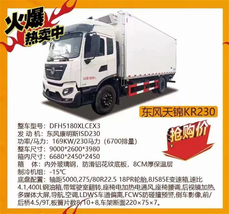 東風天錦KR230冷藏車,發動機康明斯230馬力。