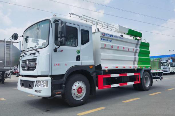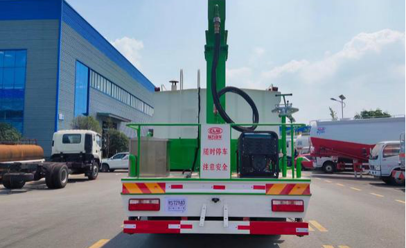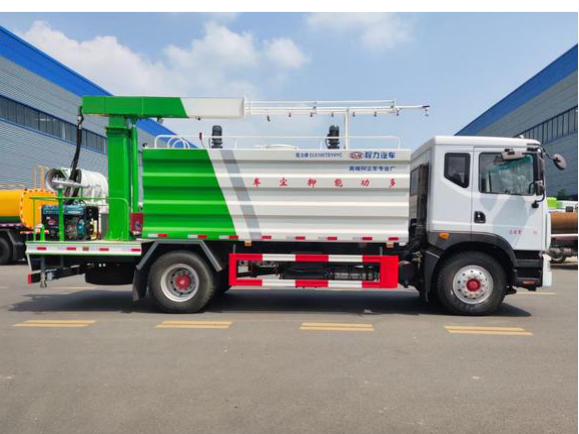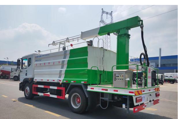 東風D9多利卡抑塵車,東風公司原裝底盤總質量:18000KG,整備質量:9660KG,額定載質量:8190KG,4500mm軸距,發動機采用康明斯210馬力,帶ABS,大燈自動調節。罐體容積約15立方,新穎的罐體設計使車輛行駛更穩定、使用壽命更長,大容量方型水箱,前沖、后灑、側噴、高炮,抑塵噴灑桿。噴灑桿離地3.4-5米、180°旋轉,后部平臺帶8KW柴油發電機組、電控箱。整車采用全智能駕駛室觸摸屏及遙控操作:車輛噴淋系統、攪拌、旋轉臂、加熱等等功能。灑水功能采用主機動力。旋轉、升降、攪拌采用發電機組動力,配電箱預留外接電源接頭套。