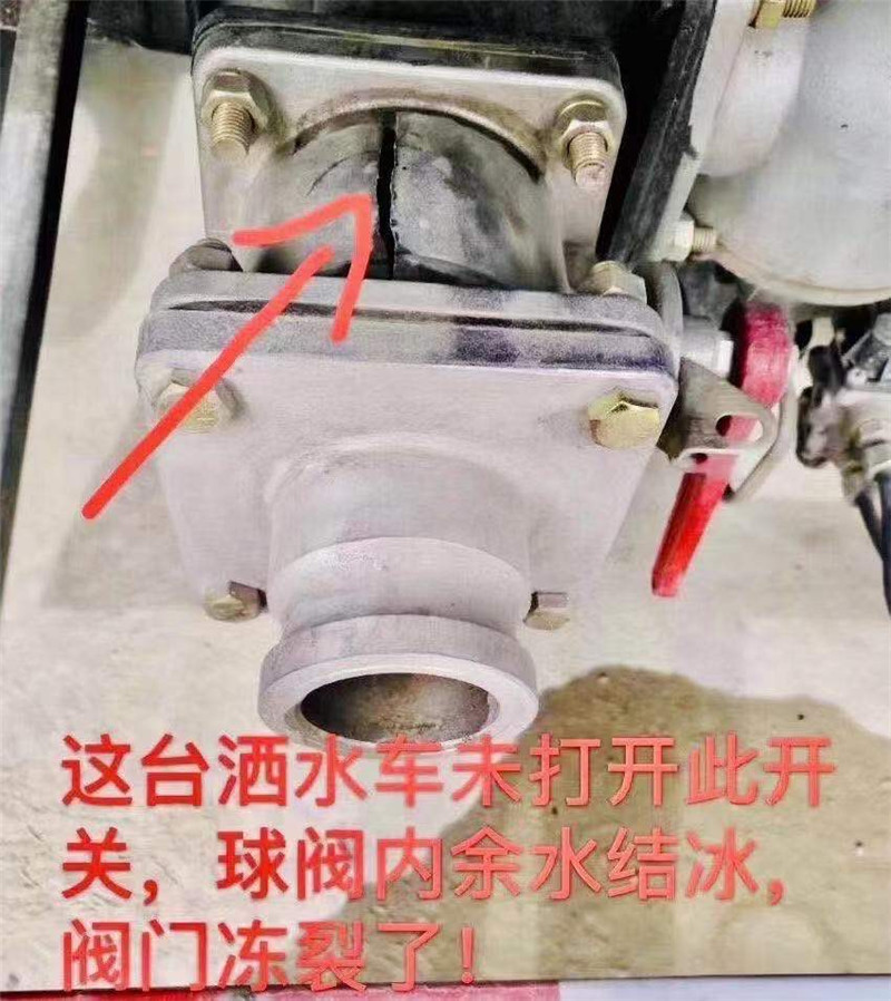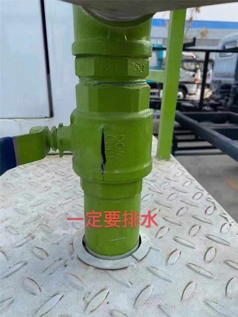 灑水車工作完后把管道和水泵的水排干凈,水泵排水口如圖