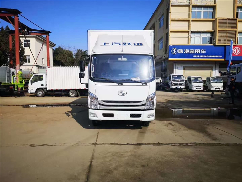 上??汽躍進國六C300藍牌新規冷??藏車,?發動機:D25TCIF1云內2.49排??量150馬力,?貨箱尺寸:4090×2080×2100mm,?輪胎:7.00R16LT 8PR,?底盤自重:2275kg。