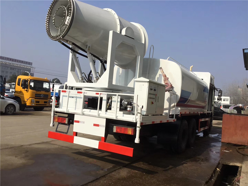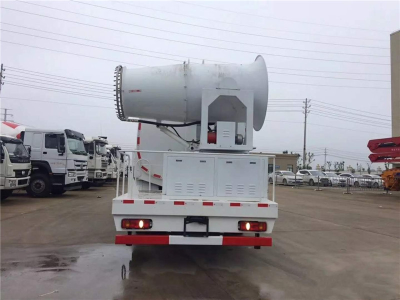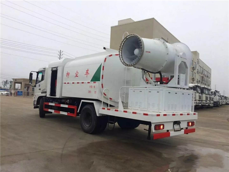 這款多功能抑塵車(chē)帶前部沖洗路面噴灑裝置、后部扇形降塵噴灑裝置,兩側(cè)面噴灑裝置,帶后部工作平臺(tái)、平臺(tái)上安裝綠化灑水炮(炮噴射形狀可調(diào)),可調(diào)直沖狀、大雨、中雨、毛毛雨,可連續(xù)調(diào)節(jié),射程可達(dá)28米,垂直吸程6.5米,揚(yáng)程14米,另加裝高效率車(chē)載式風(fēng)送噴霧機(jī),噴藥炮霧化效果好,可遠(yuǎn)程噴霧,水平射程達(dá)25米。帶消防接口、自流閥,可自吸自排。霧炮射程從30米到40米,可隨意挑選,射程不同,價(jià)格也不同,霧炮自帶柴油發(fā)電機(jī)組,標(biāo)配100米以內(nèi)遙控裝置,可360度搖控旋轉(zhuǎn),達(dá)到全方位大面積精準(zhǔn)噴霧,經(jīng)環(huán)保部門(mén)測(cè)試,霧炮車(chē)可以將空氣中的PM10濃度降低20%左右。