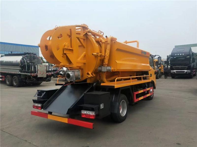 清洗吸污車污罐內部鋪不銹鋼鋼板,防腐蝕罐底,便于卸料方便,罐內帶爬梯