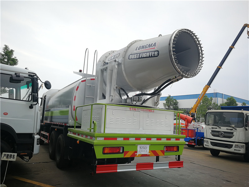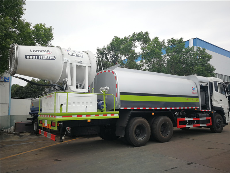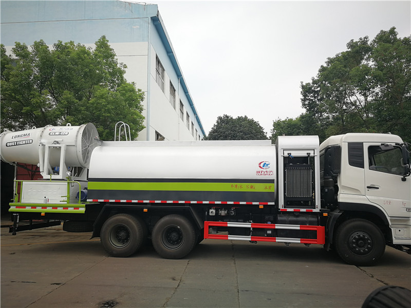 這款東風(fēng)天錦抑塵車主要結(jié)構(gòu)是在行走機構(gòu)上加裝方型大容積水罐、高效遠程霧炮系統(tǒng)、大功率專用自吸自排水泵,中低壓沖洗灑水系統(tǒng)、綠化灑水高炮(可選裝自動灑水高炮,在罐體前端)等等而改裝組成 罐體容積大(方罐容積12立方),免征產(chǎn)品。副發(fā)動機為柴油120KW發(fā)電機組,11KW水泵,37KW風(fēng)機發(fā)動機,鋁合金扇葉。無線操作(100米),及手動操作。霧化距離80米(靜風(fēng)室內(nèi)距離)實際射程:(霧化射程會受濕度、溫度、風(fēng)速等各方面天氣因素的影響,另外天氣干燥地區(qū)一部分在空中被蒸發(fā)掉)。