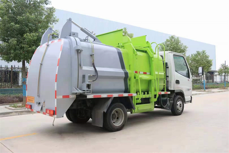 餐廚垃圾車罐體后部兩側安裝液壓油缸實現罐體舉升自卸,后蓋為液壓鎖緊。