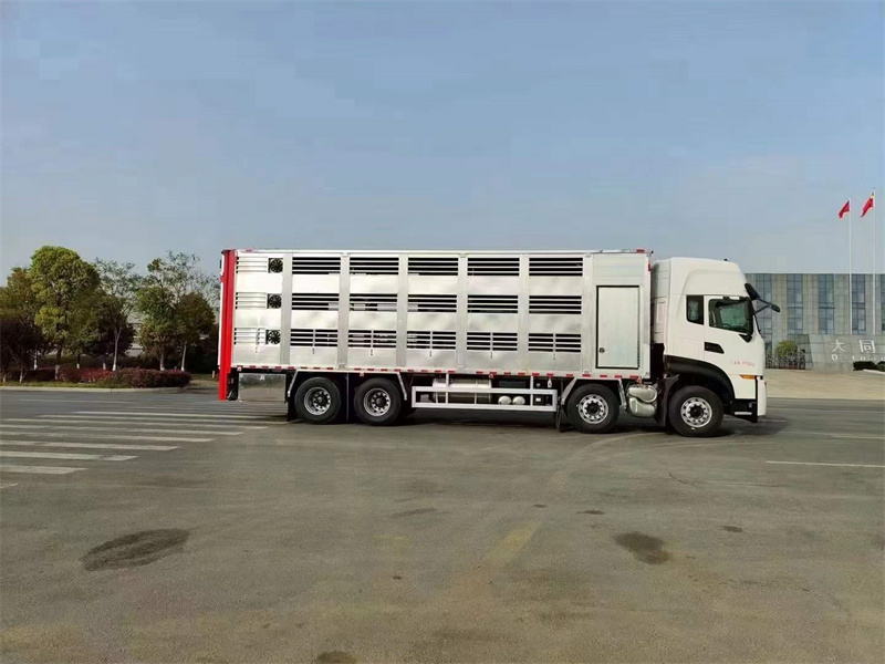東風(fēng)天龍鋁合金恒溫運豬車底盤配置:東風(fēng)天龍前四后八高頂駕駛室,國六龍擎465馬力發(fā)動機,2050+4600+1350軸距,原裝ABS,向助力,中控鎖,電動門窗,龍擎14檔手動/自動變速箱,12R22.5真空胎。整車尺寸:12000×2550×3980mm。