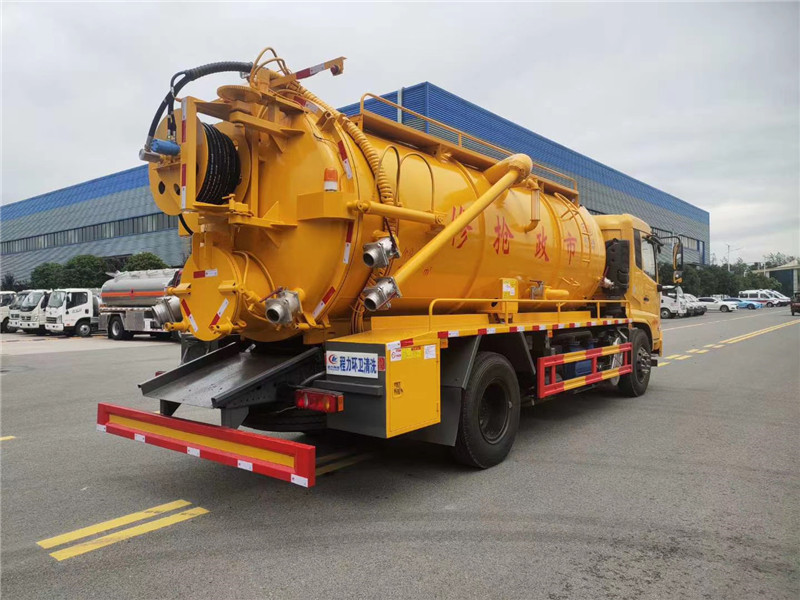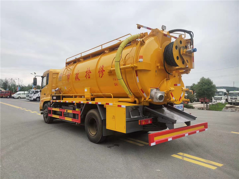 聯(lián)合疏通車(chē)清污:真空泵使吸污管內(nèi)產(chǎn)生真空和高速氣流,將吸污管插入少水、有一定硬度的污泥中,或?qū)⑽酃芸趯?duì)準(zhǔn)泥砂、垃圾等,這些污物在高速氣流的作用下被帶到污水罐中。完成下水道清污作業(yè)。