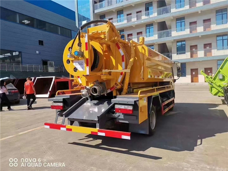 清洗吸污車兩邊清水箱容積2立方,采用武鋼優質鋼板制作,壁厚4個厚,兩倉互通,兩邊清水箱安裝低位排水排渣口,水箱頂部帶兩個DN100的換氣口(也可當加水口使用)