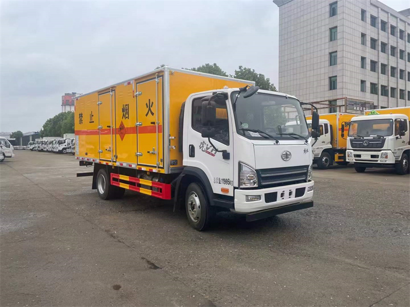 解放3900軸距爆破器材運輸車,其優點在于,箱體尺寸在同級別車型中尺寸可以做到最大,長寬高分別為5500*2400*2300。容積可以達到30.5立方,非常適合運輸煙花爆竹、炸藥雷管等一類危險品。