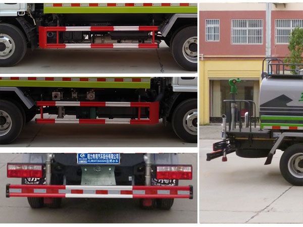 1、該車僅選用3308mm軸距,罐體有效容積為4.02立方米,罐體尺寸為(mm):3400×1600×1100。2、防護材料:Q235B碳鋼,連接方式:左右側面及后下部防護均采用螺栓連接,后部防護斷面尺寸(mm):120×50,后部防護離地高度(mm):430。3、ABS型號/廠家:ABS/ASR-12V-4S/4M/襄陽東風隆誠機械有限責任公司。4、專用裝置:罐體,主要用于路面灑水及園林綠化。5、隨底盤選裝駕駛室。