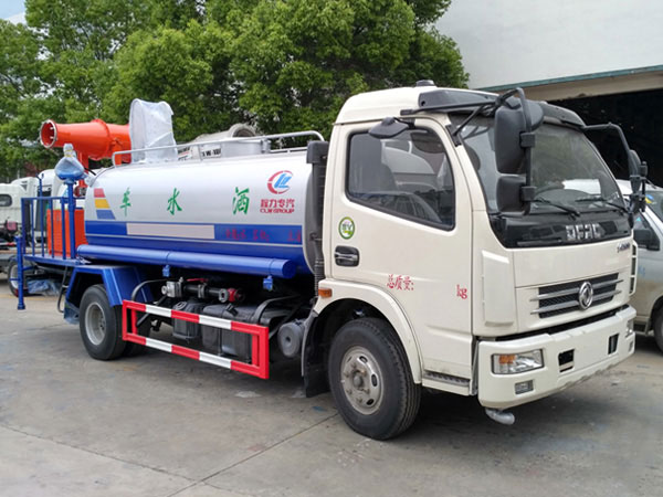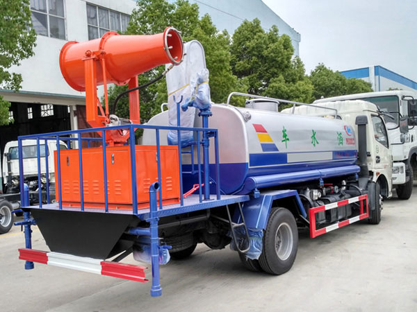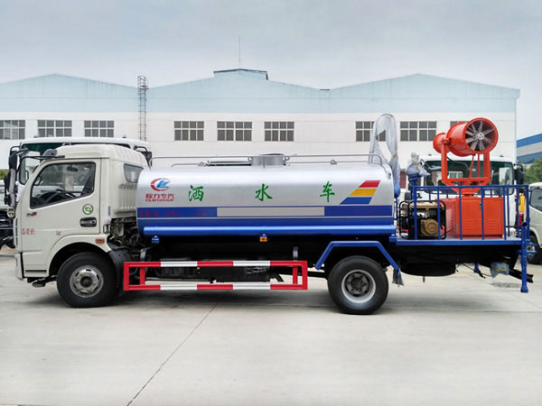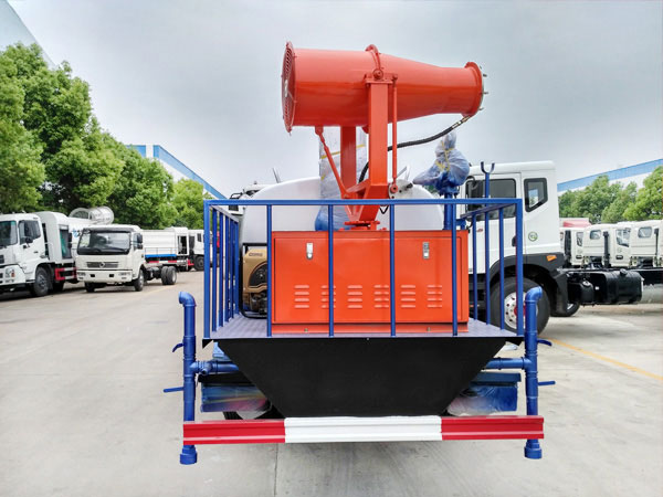 功能配置:帶前部沖洗路面噴灑裝置、后部扇形降塵噴灑裝置,兩側面噴灑裝置,帶后部工作平臺、平臺上安裝綠化灑水炮(炮噴射形狀可調),可調直沖狀、大雨、中雨、毛毛雨,可連續調節,最大射程可達28米,垂直吸程6.5米,揚程14米,另加裝高效率車載式風送噴霧機,噴藥炮霧化效果好,可遠程噴霧,水平射程達25米。帶消防接口、自流閥,可自吸自排。
