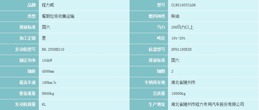 1、該車選用4700mm和4500mm軸距底盤改裝,整車長/軸距/前懸的對應關系為(mm):7800/4700/1430,7770/4700/1400,7600/4500/1430,7570/4500/1400;2、該車可選裝內(nèi)部卸料裝置,不影響整車外觀,但會引起整車重量變化,當內(nèi)部選裝相關配置時整車整備質(zhì)量/準乘人數(shù)(人)/額定載質(zhì)量對應關系為(kg):配置A:無推板卸料裝置/8150/2/9720,/8150/3/9655;配置B:推板卸料裝置/8600/2/9270,/8600/3/9205;配置C:內(nèi)部加熱裝置/8600/2/9270,/8600/3/9205;配置D:推板卸料裝置和內(nèi)部加熱裝置/8950/2/8920,/8950/3/8855;3、防護材料:Q235B碳鋼,連接方式:左右側(cè)面及后下部防護均采用焊接連接,后下部防護斷面尺寸(mm):120×50,后下部防護離地高度(mm):470。4、ABS型號/生產(chǎn)廠家:3631010-C2000/東科克諾爾商用車制動系統(tǒng)(十堰)有限公司,ABS 8/東科克諾爾商用車制動系統(tǒng)(十堰)有限公司, 4460046450/威伯科汽車控制系統(tǒng)(中國)有限公司。5、專用裝置:側(cè)裝垃圾桶提升裝置,主要用于餐廚垃圾收集及轉(zhuǎn)運。6、隨底盤選裝駕駛室。