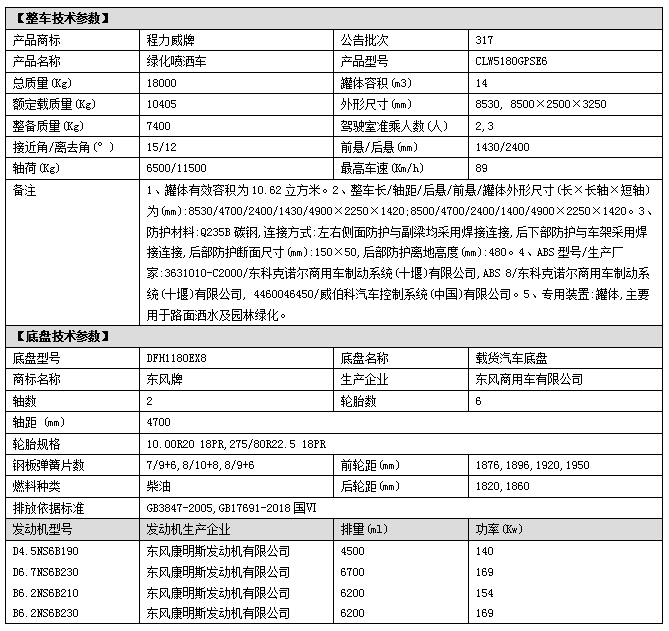 底盤配置:采用東風(fēng)天錦原裝專用底盤,東風(fēng)天錦駕駛室,4700mm軸距,搭載國(guó)六(國(guó)Ⅵ)康明斯210馬力柴油發(fā)動(dòng)機(jī),東風(fēng)6檔變速箱,9T后橋,10.00R20鋼絲胎/275真空輪胎,方向助力、斷氣剎、電動(dòng)玻璃、多功能方向盤、原裝空調(diào),ABS,GB7258新規(guī)。