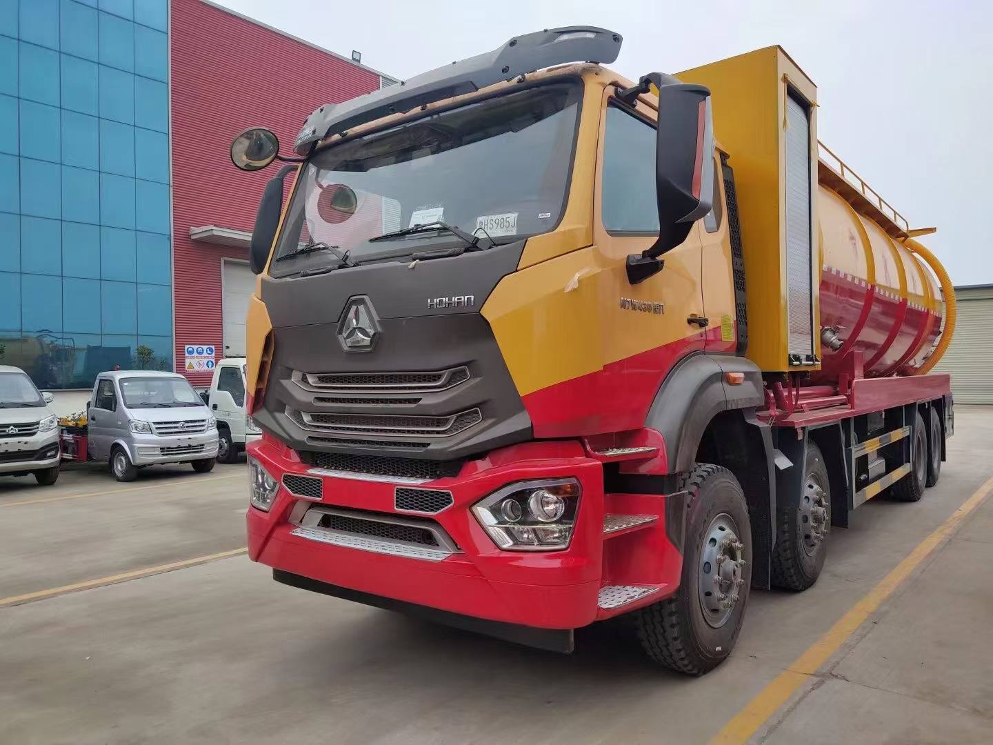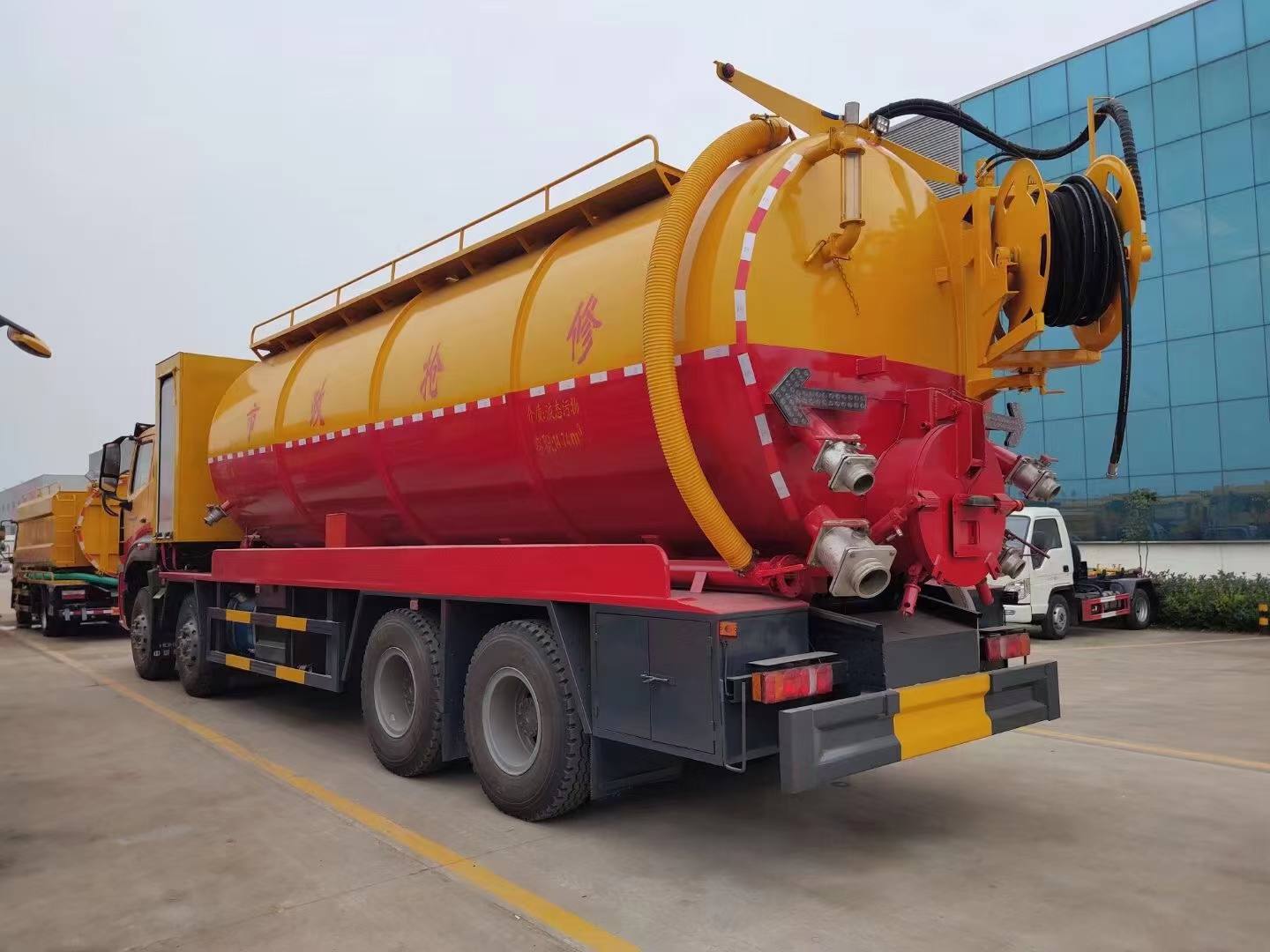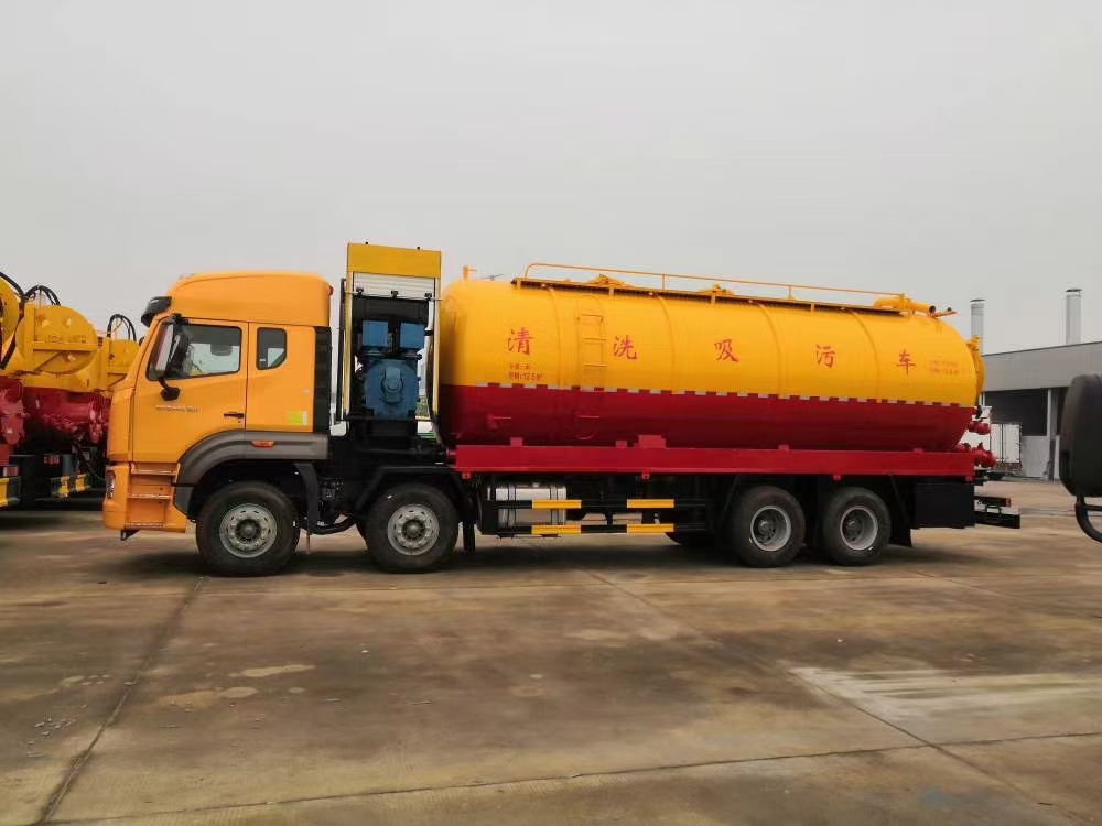 其它 | 該車專用裝置主要為污水罐和清水罐,用于下水道吸污及疏通。罐體尺寸(直段長×直徑)(mm):7100×2350,其中罐體前端為清水罐(直段長3100mm);后端為污水罐(直段長4000mm)。兩罐獨立,且不能同時滿載。清洗功能時用清水罐,吸污功能時用污水罐。污水罐有效容積14.74立方米,介質:液態污物,密度:800千克/立方米;清水罐有效容積11.79立方米,介質:水,密度:1000千克/立方米。側、后防護材料均為Q235,焊接。后防護截面尺寸320×60mm,下邊緣離地高490mm。選裝罐體頂部護欄樣式,選裝側面清洗管,選裝后罐口液壓開啟樣式,選裝后部閥門,選裝后部清洗管卷盤樣式。隨底盤選裝半高頂駕駛室、選裝晝間行駛燈、選裝油浴式空濾器。ABS系統型號為446 004 6300,生產企業為威伯科汽車控制系統(中國)有限公司。 |