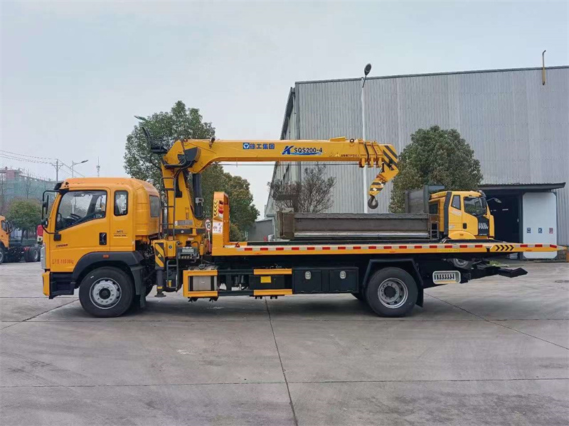 上裝配置:全8噸上裝,搭配8噸4節吊機,花紋板,雙側聯動操作裝置,8噸板,8噸后拖,8噸液壓絞盤,尾部液壓翻轉。