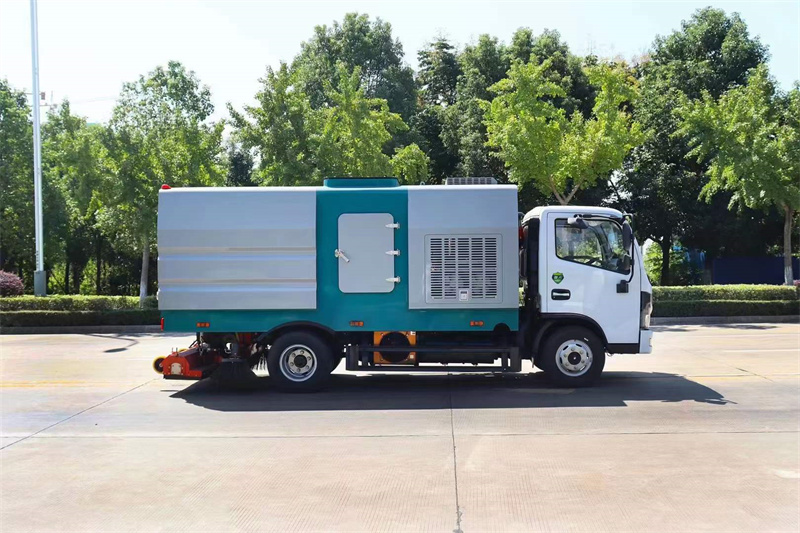 5塵,江鈴87馬力副機,后置吸盤內帶滾掃,兩側加裝掃盤和單側電控,駕駛室可視清掃車狀態監控。
