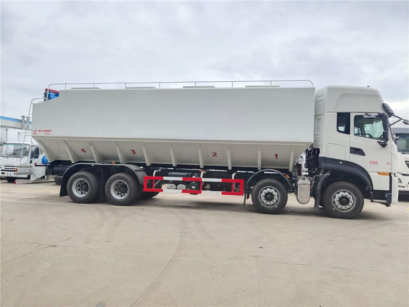 養雞場飼料車底盤配置:軸距:1995+4600+1350 高頂雙臥KL駕駛室,康明斯360馬力,陜齒12檔變速箱,前后橋5T/10T,鋁600L,295/80R22.5 輪胎,方向助力,駕駛室空調,ABS,中控鎖,電動門窗。