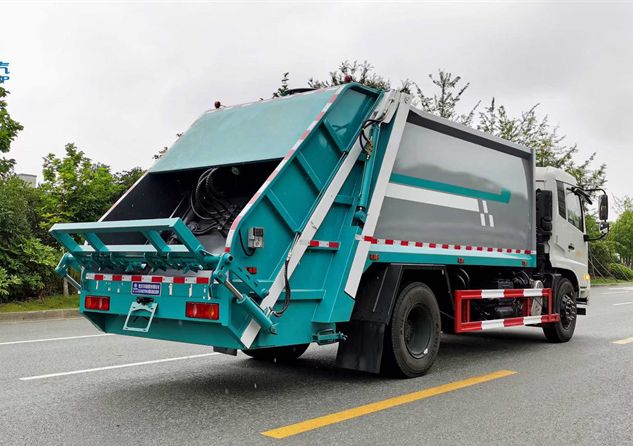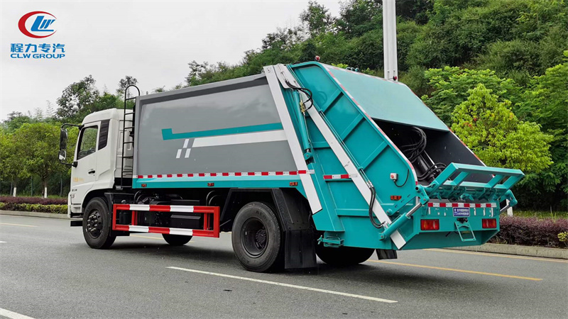東風天錦壓縮垃圾車上裝配置:垃圾箱體容積14立方,液壓操作系統為電動控制和手動控制,可選后掛桶翻轉機構,可掛2個240L塑料桶、小三角斗、擺臂裝置等,污水箱。合肥皖液齒輪泵,海普瑞斯多路閥,海普瑞斯油缸,CAN控制系統,背壓閥。