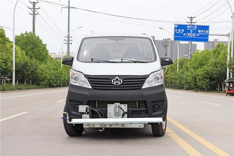 長安路面養護車上裝配置:1.5方電泳防腐水箱,本田/百力通副發可選,GYM/德國品孚高壓水泵可選,前置寬噴水架,電控開關可控制上下升降、左右擺動,20米高壓卷盤,單點多方位噴射桿。
